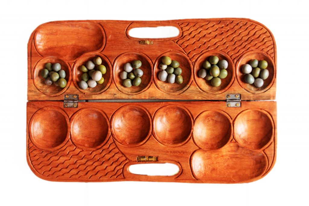 Our set includes a beautifully crafted wooden board with twelve pits and a generous supply of seeds. Each board is a unique piece of art, showcasing the craftsmanship and cultural richness of its origins. The game is easy to learn but offers endless strategic depth, making it perfect for both children and adults. It's a wonderful way to improve strategic thinking, counting skills, and planning.